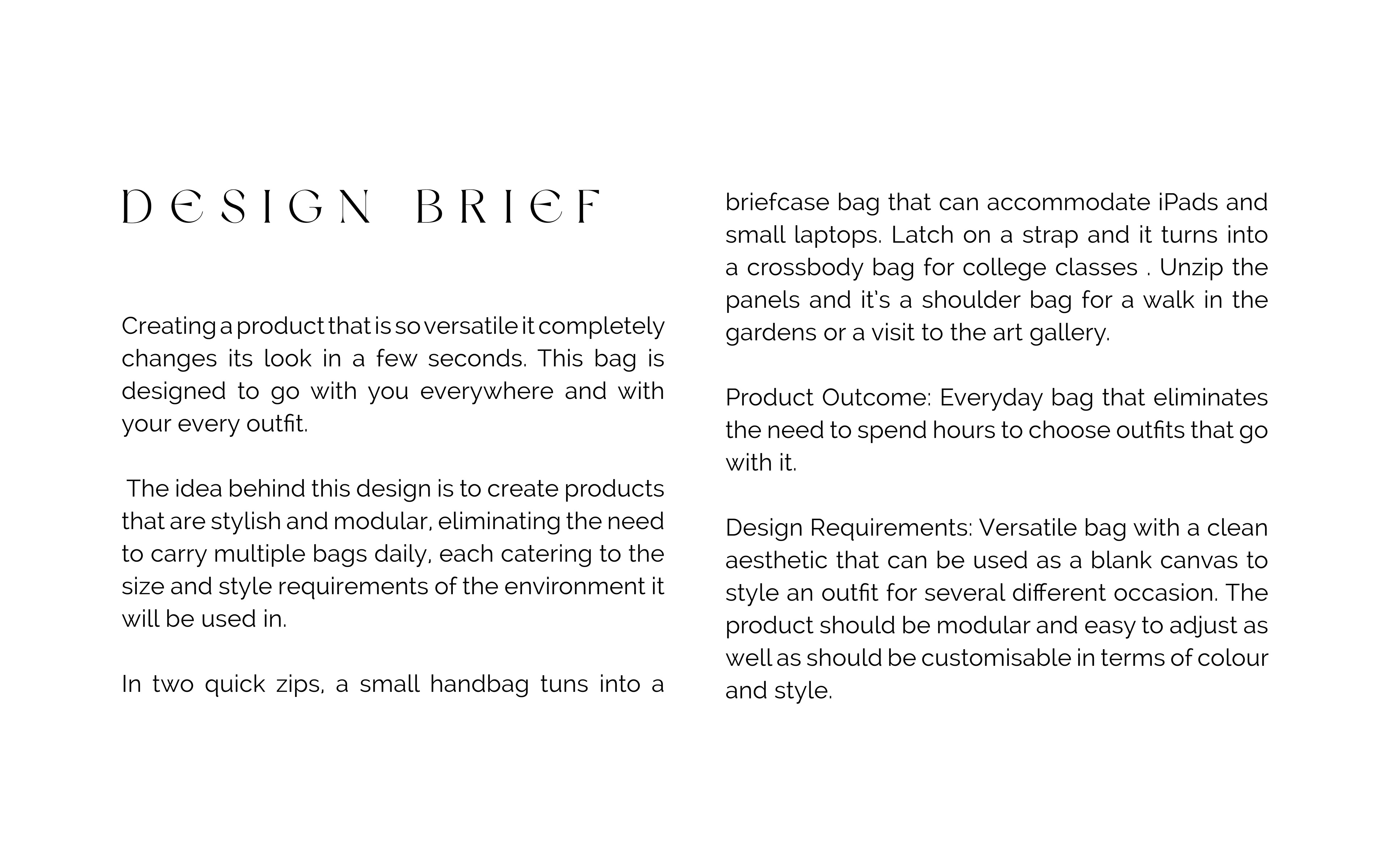 Modular Product design for leather handbags, based in human centred design to maximise usability while preserving the aesthetic value of the leather